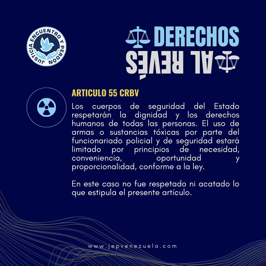 Los cuerpos de seguridad del Estado respetarán la dignidad y los derechos humanos de todas las personas. El uso de armas o sustancias tóxicas por parte del funcionariado policial y de seguridad estará limitado por principios de necesidad, conveniencia, oportunidad y proporcionalidad, conforme a la ley. En este caso no fue respetado ni acatado lo que estipula el presente artículo.